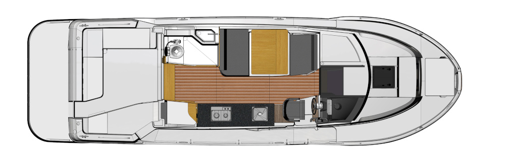 - Second poste de pilotage sur le toit-solarium (accès par une échelle) avec bimini et terrasse arrière de plain-pied.