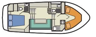 - Cabine avant avec 2 lits simples, cabine arrière avec lit double.