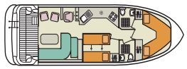 - Cabine avant avec 2 lits simples et cabine centrale avec 2 lits simples convertibles en lit double.