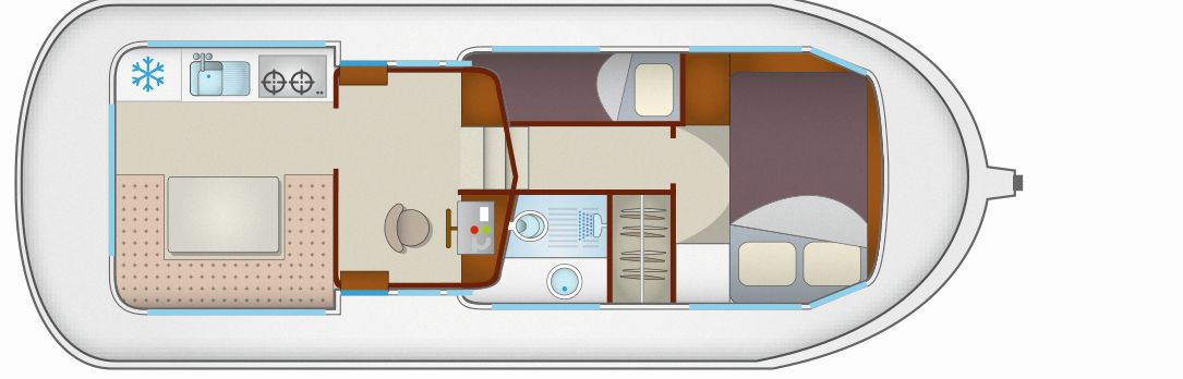 - Cabine avant avec lit double, cabine latérale avec lit simple.
