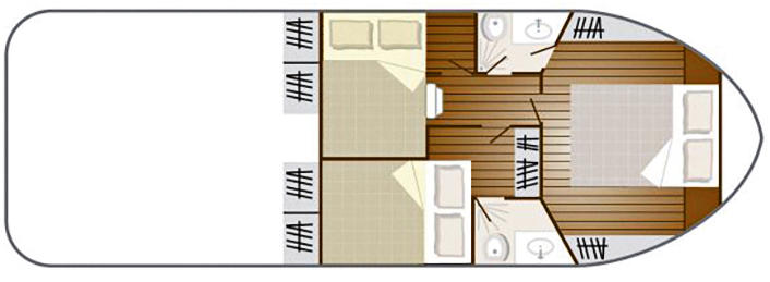 Pour vous, location de bateau rime avec famille, tribu, espace de vie et plaisirs extérieurs? Alors, c’est la gamme «Sedan» qu’il vous faut! Quoique de conception plus ancienne, ces bateaux offrent quelques atouts non négligeables, tel un superbe séjour avec vue panoramique et accès direct à la terrasse. Néanmoins, nous les conseillons plus volontiers à des familles avec enfants à cause de leurs cabines «chausse-pied» qui se trouvent en partie sous le salon.